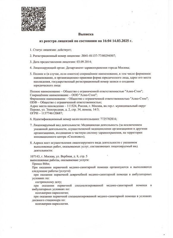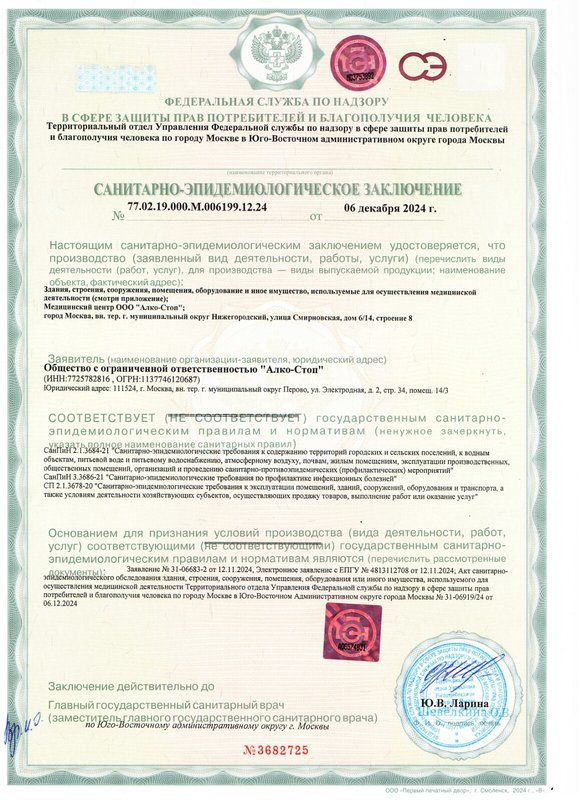 Наркологическая клиника Алко-Стоп - это многопрофильное медицинское учреждение, предлагающее индивидуальный комплекс процедур и услуг для каждого клиента. В работе клиники все построено с учетом комфортного пребывания посетителей. Оснащение центра помогает провести диагностические исследования организма пациента для составления программы лечения и профилактических мероприятий. В клинике открыты отделения психиатрии, психотерапии, наркологии. Наши работники имеют высокую квалификацию и с пониманием отнесутся к вашим проблемам. Доверяя заботу о своем здоровье нам, вы можете быть уверены в результате.